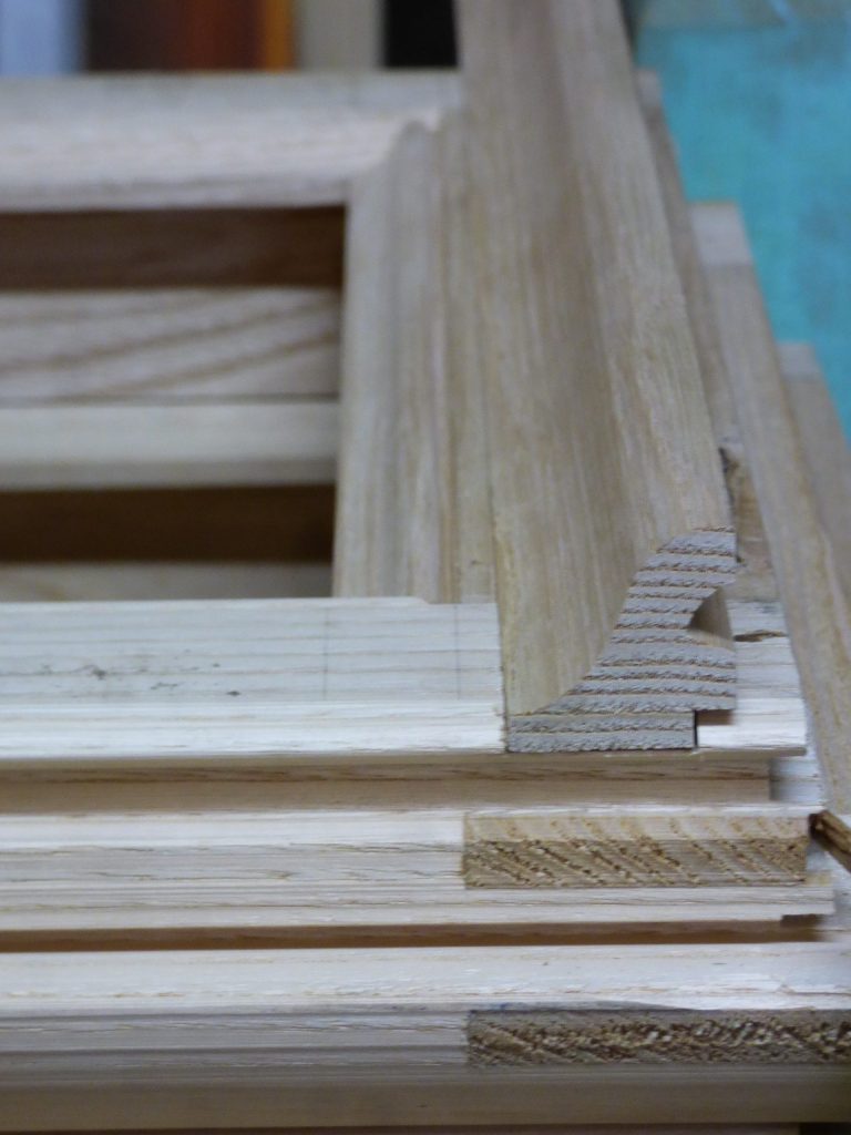 Ou recherche d’amélioration thermique avec le respect de l’ancien: mêmes moulures, principe mouton/gueule de loup, renvoi des angles des moulures avec des coupes d’onglet, mais avec étanchéité renforcée et double vitrage…
