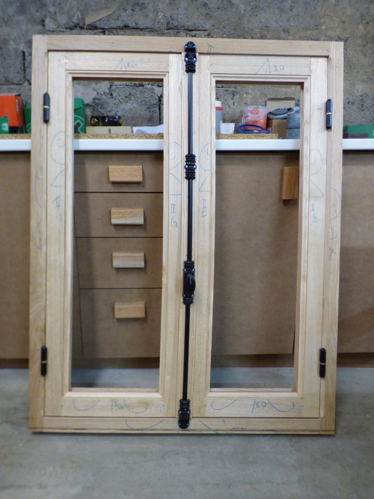 reproduction à l’identique dans le pure respect de l’ancien: mêmes sections, assemblages, moulures et travail, avec du simple vitrage posé avec du mastic de vitrier avec ses petits bois…